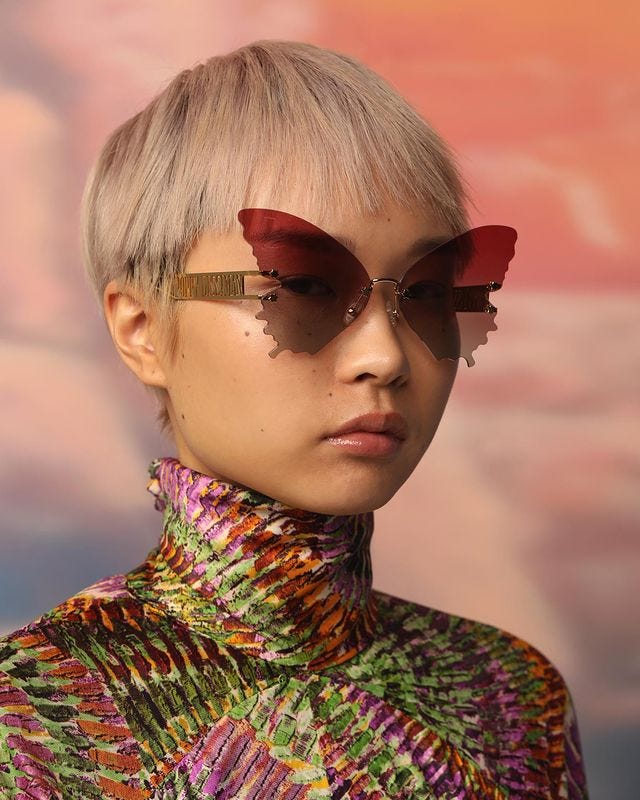 If you don’t think someone on Euphoria would wear these rimless butterfly sunglasses than you’re wrong. I’ve mentioned Poppy Lissiman before, and they just dropped these brand new Dream Lover shades in pink and blue.