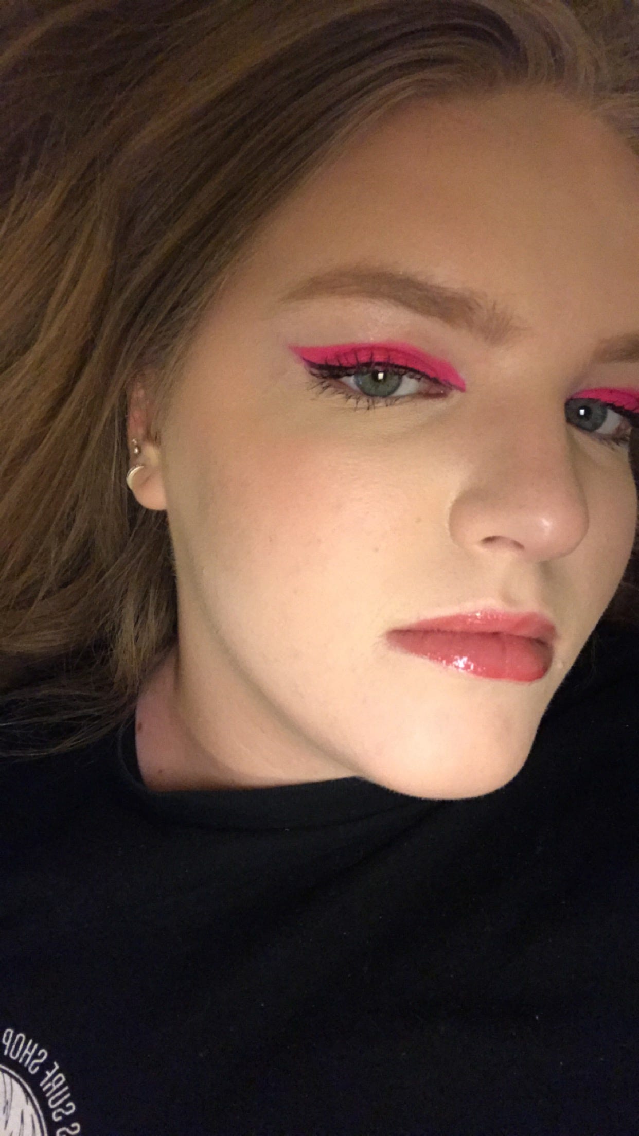 Like I said in the intro, I wore a hot pink eye cat-eye last weekend. I had a ton of people in my DMs asking me what I used, so I figured it would be a perfect Attention Whore item. I used NYX’s Vivid Brights Creme Color in Love Overdose to create the look. I didn’t use a primer, and it lasted all night and didn’t fall.