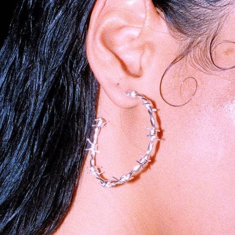 Hoops are a staple for anyone with a sense of style and ear piercings. The Barbwire Hoop Earrings from Shami give the classic hoop an edge. The gold is currently sold out but the silver is still available.
