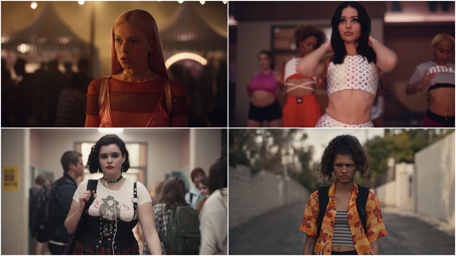 Euphoria's outfits and makeup are so memorable that they warrant a Sex And The City type frenzy. Its aesthetic is potent and well established for a show with one eight-episode season. Think tons of pigmented glitter eyeshadow, pants with thigh cut-outs, corsets, see-through fabric, and latex.